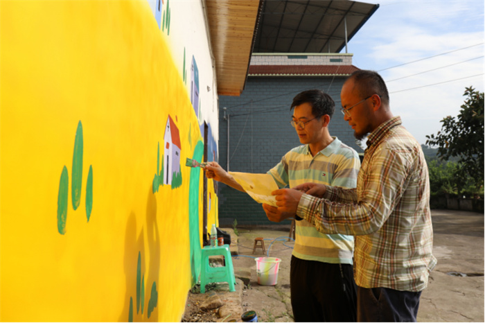 艺术与传媒学院副院长王颖介绍到,永川区该项目经永川区松溉镇政府提出合作需求,由重庆城市科技学院乡村振兴学院及艺术与传媒学院负责实施。学院乡村振兴研究中心工作组师生积极投入到松溉镇鱼岭村主题墙绘工作中,视觉传达教研室主任邵文杰,摄影教研室副主任谭宇,教师周源、任士革、高翔,学生杨志强、龚莉莉、朱慧颖、孙梓桐等师生已连续工作两周时间。